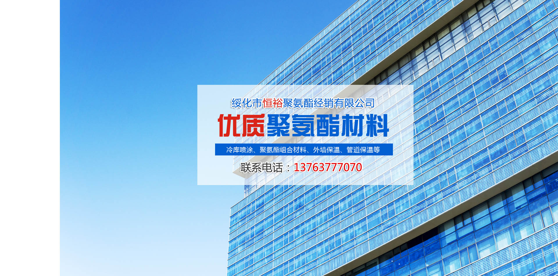 綏化市恒裕聚氨酯經(jīng)銷(xiāo)有限公司是一家集聚氨酯材料 、生產(chǎn) 銷(xiāo)售為 綜合型企業(yè),主要經(jīng)營(yíng)聚氨酯組合料(黑白料)銷(xiāo)售,另承接冷庫(kù)保溫,別墅保溫,外墻保溫 管道保溫等大中小工程 公司擁有30臺(tái)進(jìn)口噴涂設(shè)備,年施工量3000噸。